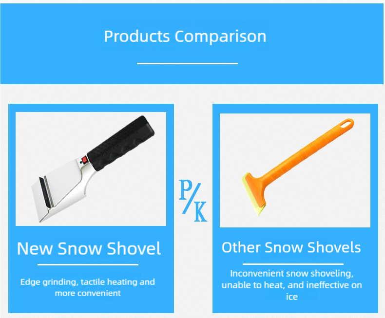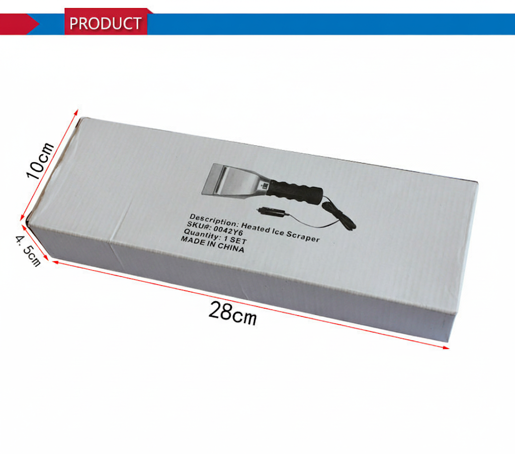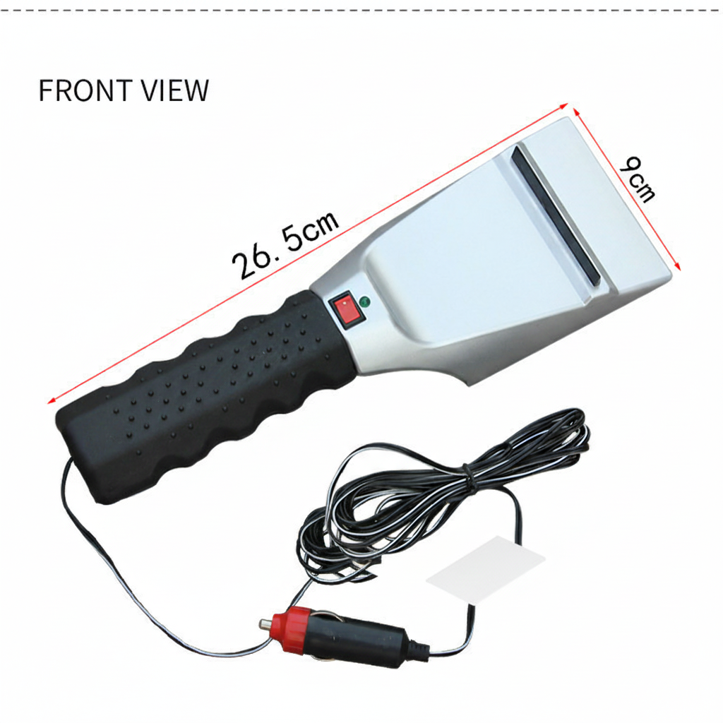 Feature highlights: 3-IN-1 FUNCTIONALITY, Combines a snow shovel, heated ice scraper, and rain wiper in one robust tool. INSTANT HEATING TECHNOLOGY, Plug into your vehicle's 12V outlet for rapid heating to melt ice and frost on contact. ERGONOMIC DESIGN,Textured handle with a secure grip and intuitive button control for easy operation. DURABLE CONSTRUCTION,Sturdy metal blade and high-quality materials built to withstand harsh winter conditions. SAFE AND EFFICIENT, designed to clear windshields, windows, and vehicle surfaces quickly without scratches or damage. Don't let winter slow you down! Our 12V heated snow and ice scraper is the ultimate solution for drivers facing brutal snow, ice, and freezing rain. Simply plug into your car's 12V lighter socket, press the heated scrape button, and watch as stubborn ice melts away effortlessly. The extended handle provides leverage for shoveling snow, while the heated blade ensures a clear view in seconds. Perfect for keeping your car windows, mirrors, and lights clean and safe during the toughest winter mornings.