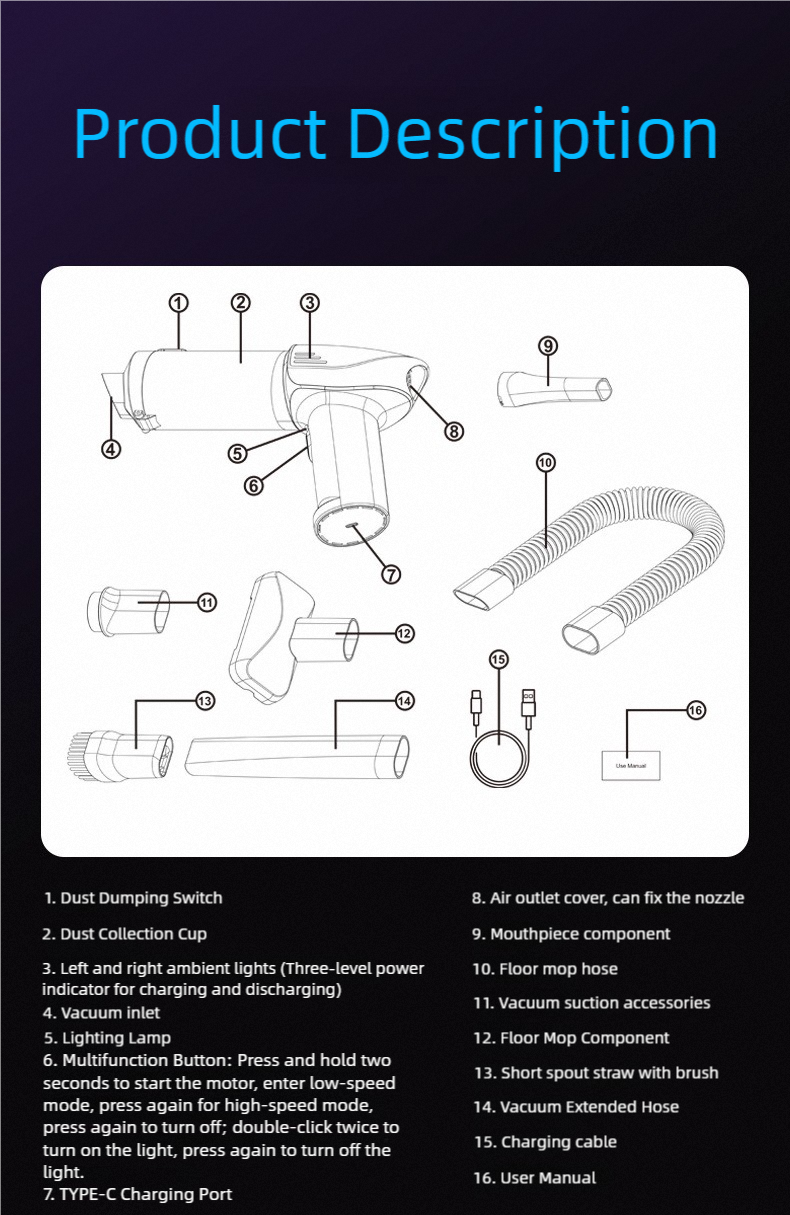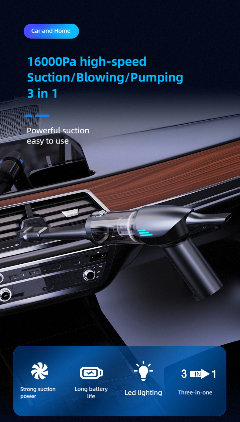 Wireless handheld car-mounted brushless vacuum cleaner, vehicle-sized compact dual-function suction and blowing machine, super strong suction power